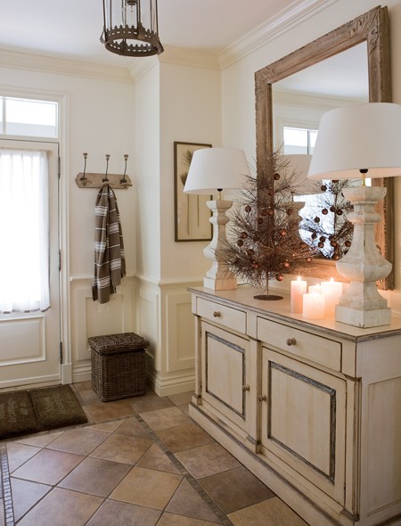 Une des façons les plus simples de décorer sobrement est de débuter par le hall d’entrée.