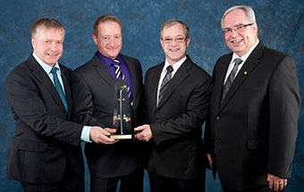 Entreprise : M. Denis Houle – plâtrier Lauréats : M. Denis Houle, Mme. Line Thériault, M. Sylvain Dionne de la RBC M. Denis Houle, Mme. Line Thériault et M. Sylvain Dionne, gagnants dans la catégorie « Entrepreneur spécialisé de l’année », dans l’est du Québec, dans le cadre du Gala Habitation 2012.