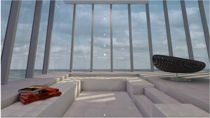 « À l’intérieur, les espaces de vie disposent d’un ameublement minimaliste pour assurer que la vue sur l’océan et l’expérience unique que procure la maison soit préservée intégralement et que cette expérience reste le point focal du design original. » rapporte le site.