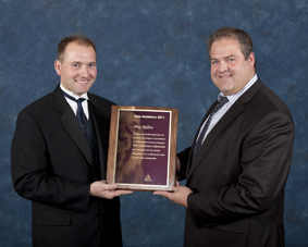 MM. Dominique Fleury et Laurier Gauthier, KSA avocats, gagnants dans la catégorie « Prix relève», dans l’est du Québec, dans le cadre du Gala Habitation 2011