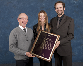 M. Sylvain Bourdeau, Mme Johanne Laferrière et M. David Bourdeau, gagnants dans la catégorie « Entrepreneur de l’année performance/excellence», dans l’est du Québec, dans le cadre du Gala Habitation 2011