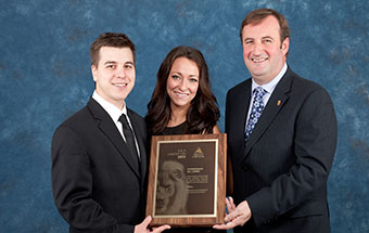 M. Denis Houle, Mme. Line Thériault et M. Sylvain Dionne, gagnants dans la catégorie « Entrepreneur spécialisé de l’année », dans l’est du Québec, dans le cadre du Gala Habitation 2012.