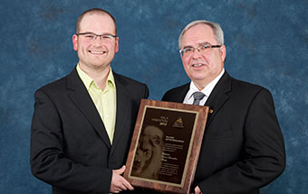 M. Pierre-Luc Verret, Mme Mélissa Laberge et M. Sylvain Dionne de la RBC, gagnants dans la catégorie « Fournisseur de l’année », dans l’est du Québec, dans le cadre du Gala Habitation 2012.